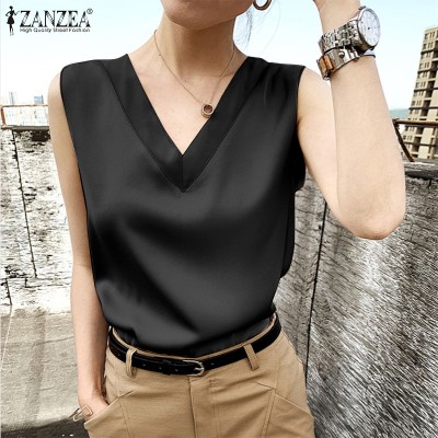 Celmia ZANZEA女式无袖缎面丝绸上衣衬衫纯色OL办公商务背心#11