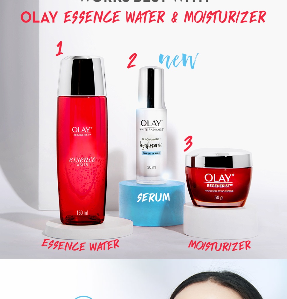 PRODUCT BENEFITS • From first use, makes skin look smoother and brighter. • Smoother, fresher, whiter & more translucent complexion. FORMULA • Developed with patented Pearl-OpticsTM Technology to brighten skin. • Olay’s specially designed dropper mechanism enables targeting problem areas. • Formulated with advanced Sepitonic Complex to banish dulling yellow skin. • Inhibits melanin formation in the deepest layer of skin. • Infused with Anastatica to seal in moisture & deliver long-lasting hydration. • Features a lightweight, silky milky texture for fast absorption. How to use? Use after cleansing and toning steps, and before using facial moisturizer. Un-screw the cap to automatically draw up the product into the dropper. Press the pump button of the cap to dispense product. For Automatic refill – close the cap tightly after every use. For Manual refill – press, hold and insert. How often to use? Apply 2-pump dosage for ideal results, morning and evening. Works Well With White Radiance Light Perfecting SPF24 Day Cream/ White Radiance Light Perfecting Day Lotion + White Radiance Light Perfecting Night Cream ***Expiry date is 3 years from the manufactured date as printed on the box